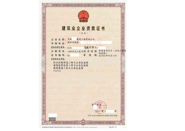 • 建筑業企業資質證書