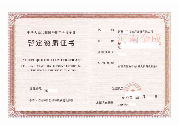 • 4.鄭州房地產開發資質代辦多少錢暫定級如何延期