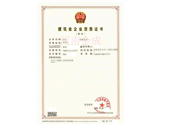 • 建筑業企業資質證書副